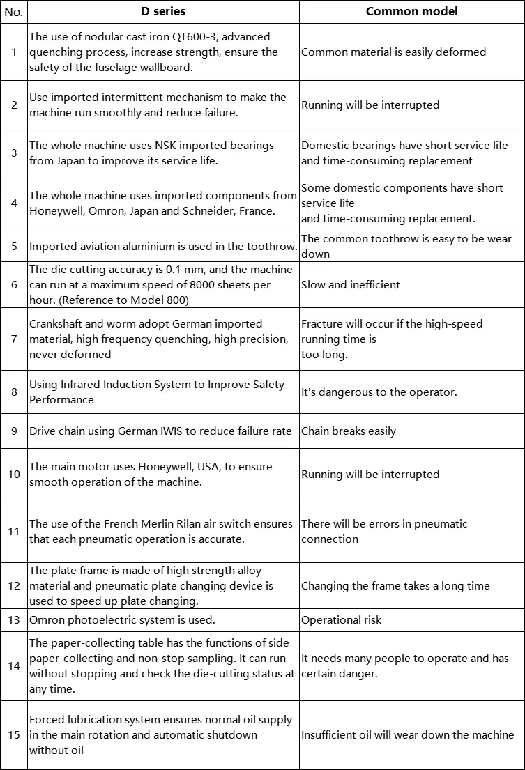 * ការប្រើប្រាស់ម៉ូទ័រធំ ៗ (ការកំណត់រចនាសម្ព័ន្ធជម្រើស), ល្បឿនកាត់បន្ថយស្លាប់អាចឈានដល់ 7500 សន្លឹកក្នុងមួយម៉ោង។